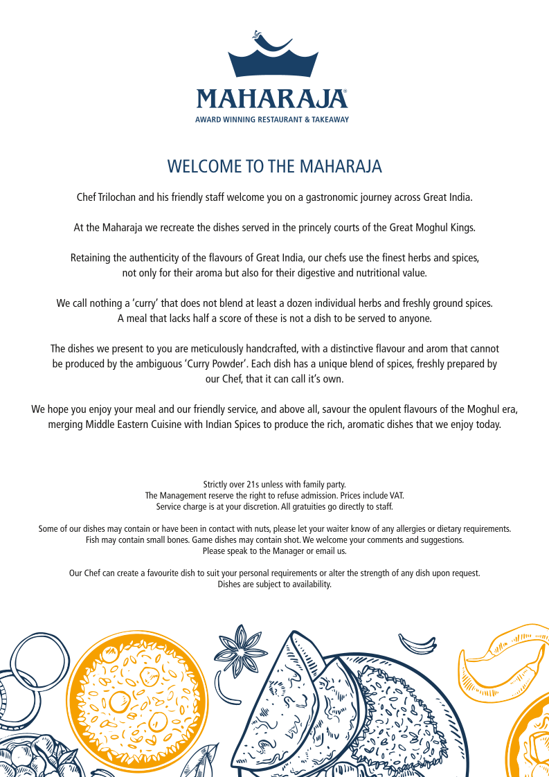 If you're in the mood for authentic Indian cuisine with rich flavors and aromatic spices, the Maharaja Restaurant Menu will take your taste buds on an unforgettable journey. Located at 358 London Rd, South Benfleet, this place is a true gem for food lovers. The menu offers a wide selection, from mouth-watering starters to hearty main courses. You’ll find all your favorite Indian dishes like creamy butter chicken, tender lamb curries, and a variety of freshly made naan breads. If you're a fan of spicy, there are plenty of options that pack a punch, while those who prefer milder flavors can indulge in dishes that are perfectly balanced. The best part? Whether you're in the mood for a quick bite or a full feast, the Maharaja's menu is designed to cater to every craving. It’s not just a meal; it’s an experience that brings together the essence of Indian cooking in every bite.